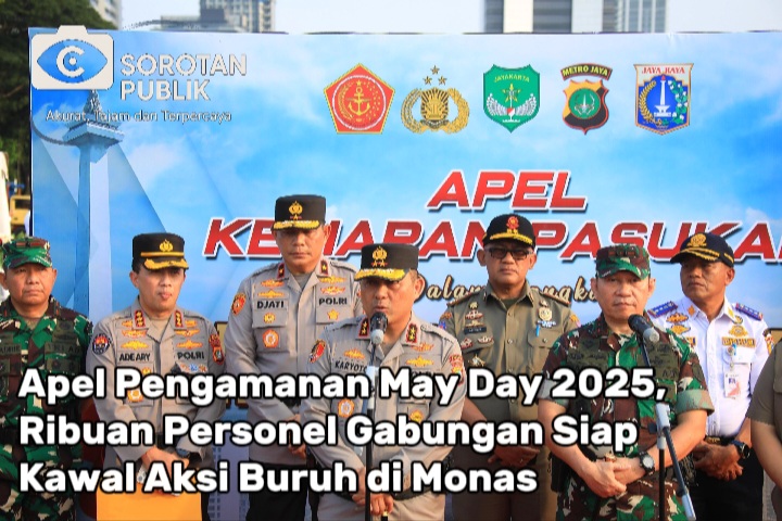 Jakarta, Sorotan Publik – Kapolda Metro Jaya Irjen Pol Karyoto bersama Pangdam Jaya Mayjen TNI Rafael Granada Baay memimpin Apel Kesiapan Pengamanan May Day 2025 di Lapangan Silang Monas Selatan, Jakarta Pusat, Selasa (29/4/2025).