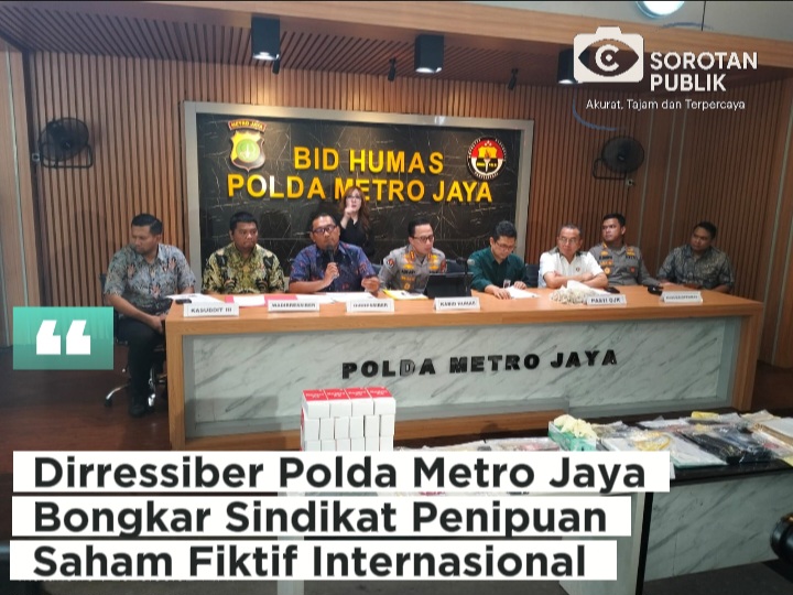 Jakarta,Sorotan publik – Direktorat Reserse Siber Polda Metro Jaya berhasil mengungkap jaringan kejahatan penipuan online internasional (online scam) dengan modus aplikasi saham fiktif yang melibatkan warga negara Indonesia (WNI) dan warga negara asing (WNA).
