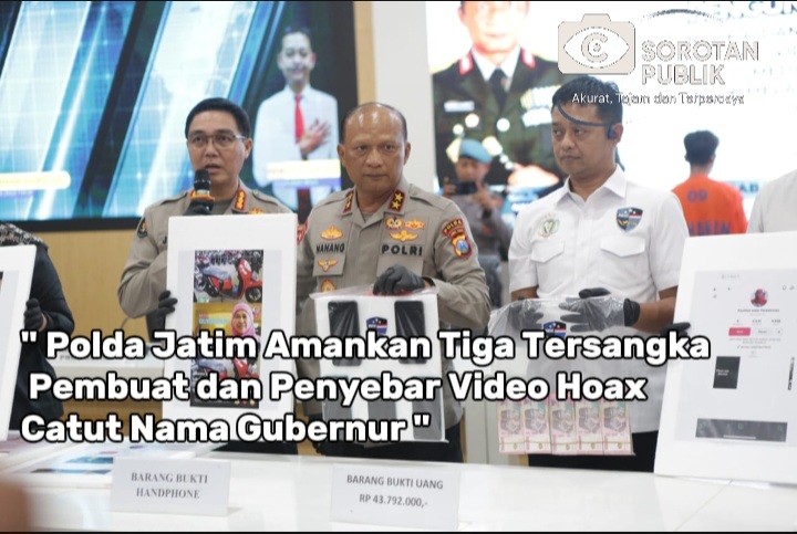 Surabaya, Sorotan Publik – Kepolisian Daerah Jawa Timur (Polda Jatim) berhasil membongkar kasus tindak pidana Informasi dan Transaksi Elektronik (ITE).